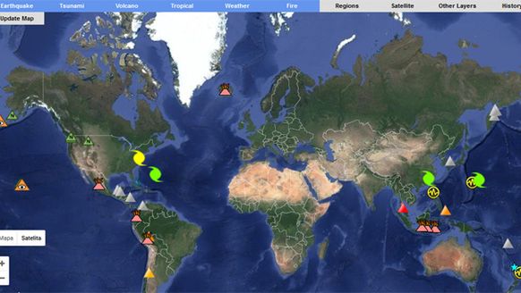 Interaktywna mapa wulkanów i trzęsień ziemi