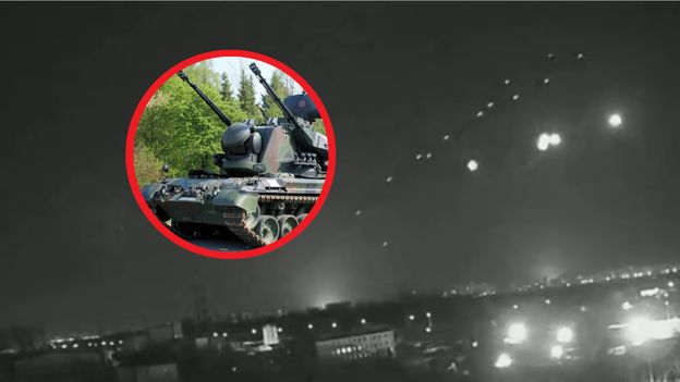 Obrona powietrzna Ukrainy w gotowości. We wtorkową noc Rosjanie wystrzelili w kierunku Kijowa kilkadziesiąt irańskich dronów kamikaze. W stolicy zawyły syreny, a do akcji wkroczyły Gepardy - niemieckie samobieżne działa przeciwlotnicze. Okazało się, że kamera przemysłowa zarejestrowała moment obrony miasta właśnie przy pomocy broni z Berlina. Nagranie trafiło do sieci i widać na nim, że zachodni sprzęt co chwilę wystrzeliwuje salwy pocisków w stronę wrogich celów. W pewnym momencie dochodzi do zniszczenia irańskiego drona, który po chwili wybucha w powietrzu, rozświetlając nocne niebo nad Kijowem. Przed godz. 5 rano czasu lokalnego stołeczna administracja wojskowa informowała o 9 zestrzelonych dronach, apelując przy tym do mieszkańców, by pozostali w schronach lub piwnicach. Z kolei portal "Ukrainska Pravda" donosił o dwóch kolejnych eksplozjach w mieście. Po godz. 6 rano mer Kijowa Witalij Kliczko potwierdził, że do eksplozji doszło w dwóch dzielnicach.