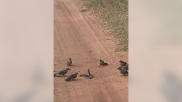 Jadowity wąż kontra stado wściekłych ptaków. Zaskakujący finał pojedynku