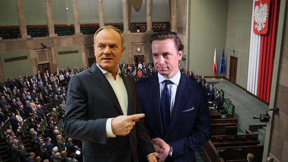Czysto matematyczna koalicja KO i Konfederacja miałyby łącznie 254 mandaty – taka układanka oczywiście daje bezpieczną większość, ale jest też wysoce nieprawdopodobna ze względu na różnice programowe.
