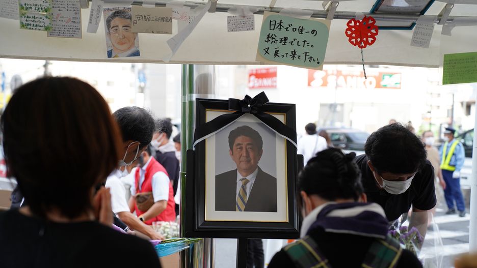 Decyzja o państwowym pogrzebie budzi kontrowersje, ponieważ takie ceremonie są rzadkością. Z sondaży wynika, że ponad połowa japońskiej opinii publicznej sprzeciwia się państwowej uroczystości. W Japonii trwają protesty, których można spodziewać się nawet w dniu pogrzebu.