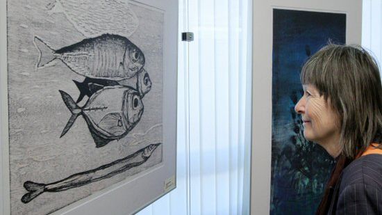 - Ta technika pozwala, tak jak w litografii, osiągnąć efekty typowo malarskie naśladujące dukt pędzla czy ślad kredki z efektami charakterystycznymi dla drzeworytu, czyli techniki rytowanej, ciętej w drewnie - tłumaczyła Pietrzak.