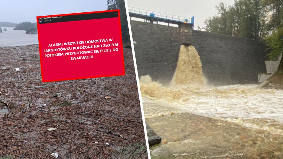 "Wszystkie domostwa w Jarnołtówku położone nad Złotym Potokiem powinny przygotować się pilnie do ewakuacji" - alarmują strażacy z OSP Jarnołtówek.