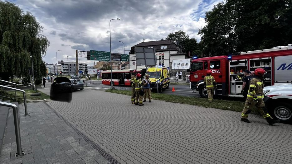 Wypadek w Jeleniej Górze. Auto osobowe uderzyło w autobus miejski, a następnie zjechało na chodnik. Pojazd wjechał w czteroosobową rodzinę. W wyniku zdarzenia poszkodowane zostały trzy osoby, w tym dziecko.