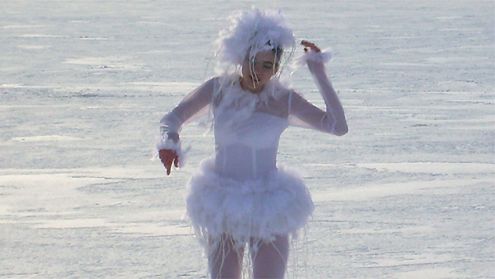 Baletnica na zamarzniętym jeziorze. Sztuką jest zatańczyć "Jezioro Łabędzie", jeszcze większą na zaśnieżonej tafli