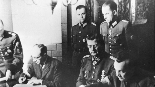Heinz Reinefarth (po środku z Krzyżem Rycerskim) podczas walk na Woli (fot. Wikimedia Commons)