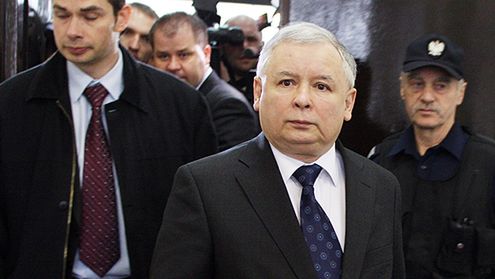 Warszawa, 27.03.2009. Prezes PiS Jarosław Kaczyński idzie na proces w Sądzie Okręgowym w Warszawie.
