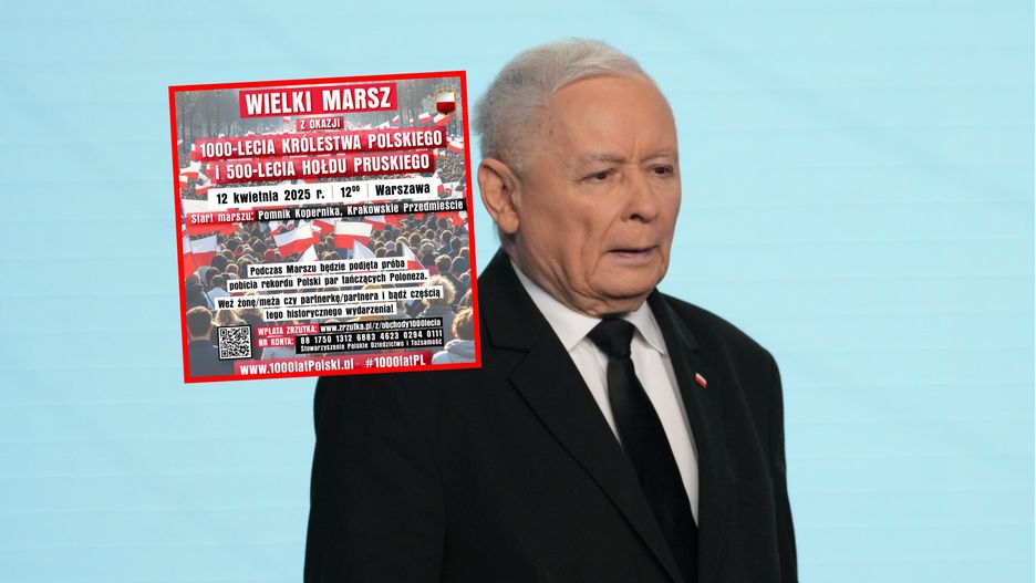 Prezes PiS Jarosław Kaczyński zaapelował na X do wzięcia udziału w marszu z okazji 1000-lecia Królestwa Polskiego i 500-lecia hołdu pruskiego.