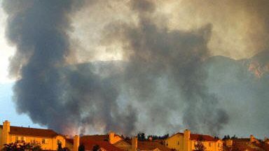W kanionie na północny-wschód od San Bernardino wybuchł w sobotę nowy pożar, który zniszczył trzy domy i zagraża setkom dalszych w rejonie mieszkalnym w pobliżu uniwersytetu stanowego. Silny wiatr uniemożliwił wysłanie do akcji gaśniczej samolotów i śmigłowców.