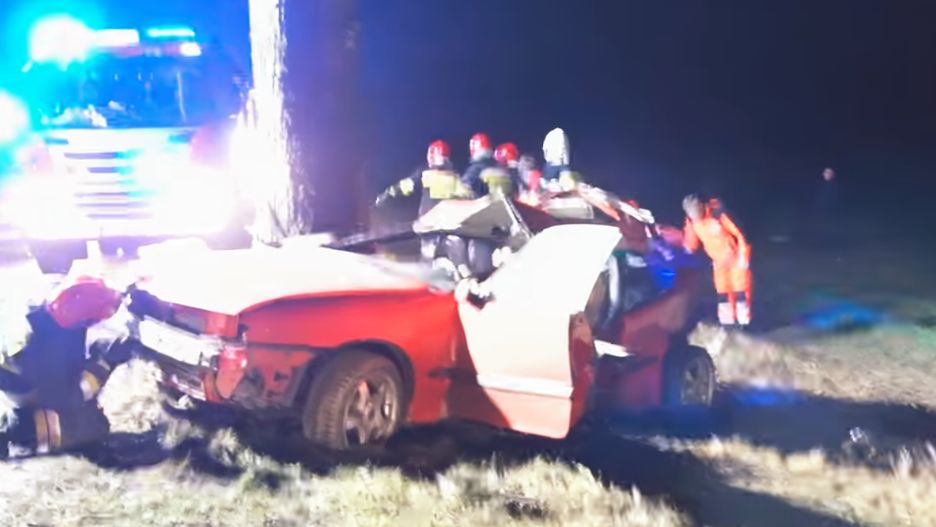 We wtorek wieczorem, około godz. 19, opel calibra - zjechał na przeciwległy pas ruchu i uderzył w drzewo. Siła uderzenia była tak duża, że z samochodu niewiele pozostało. Strażacy musieli rozcinać karoserię, by wydostać z wraku ofiary wypadku.