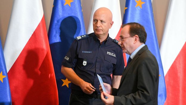 Minister spraw wewnętrznych i administracji Mariusz Kamiński wykluczył dymisję gen. Jarosława Szymczyka z funkcji Komendanta Głównego Policji. Zapowiedział spotkanie z szefem ukraińskiego MSW. To pokłosie wystrzału z granatnika, który gen. Szymczyk otrzymał od policji ukraińskiej. O komentarz do sprawy Patrycjusz Wyżga pytał Andrzeja Mroczka, byłego policjanta i eksperta ds. terroryzmu Collegium Civitas. - To naturalne, że minister staje w obronie swojego podwładnego. Uważam, że tego typu przekaz w tak ważnej sprawie nie powinien odbywać się przez kanał twitterowy. Taki jednoznaczny komunikat gryzie się z działaniami prokuratury. W mojej ocenie postępowanie prokuratury jest powolne w kontekście tak spektakularnej sytuacji zagrożenia w Komendzie Głównej Policji, ale nie tylko. Mamy też kwestię przejazdów, przemieszczanie się po Warszawie. Według przekazu komendanta, w każdej chwili mogło dojść do samozapłonu - mówił gość programu "Newsroom WP"