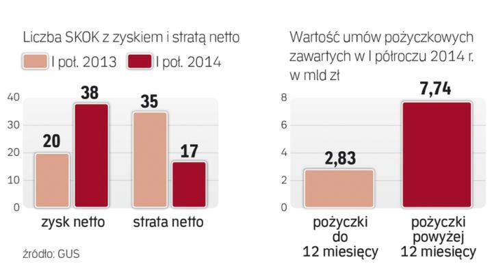 Paradoksalnie z powodu złej kondycji spółdzielczych kas może ucierpieć konkurencyjny sektor bankowy. Nie dość bowiem, że kasy odbierają bankom klientów, proponując wyższe oprocentowanie depozytów (w Wołominie to 4,6 proc. na dwa lata wobec średnio 2,5 proc. w sektorze bankowym), to jeszcze ich słaba kondycja spowodowała zwiększenie od 2015 r. opłaty ponoszonej przez banki na Bankowy Fundusz Gwarancyjny. - Zysk netto sektora może się skurczyć o 4-6 proc. w 2015 r. - szacuje Paweł Kozub, analityk UniCredit CAIB. - Banki wiedzą, że muszą ponieść koszty naprawy systemu SKOK.