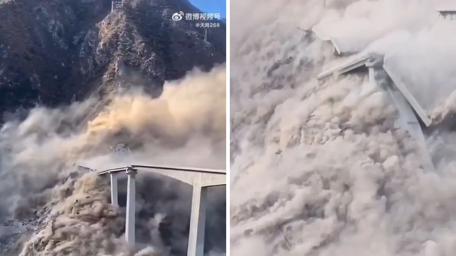 Na krążących w mediach społecznościowych nagraniach widać, jak filary zawalają się pod wpływem ciężaru spadających skał i część mostu zapada się do rzeki, nad którą został zbudowany. Widać jedynie stertę gruzu i potężną chmurę pyłu.