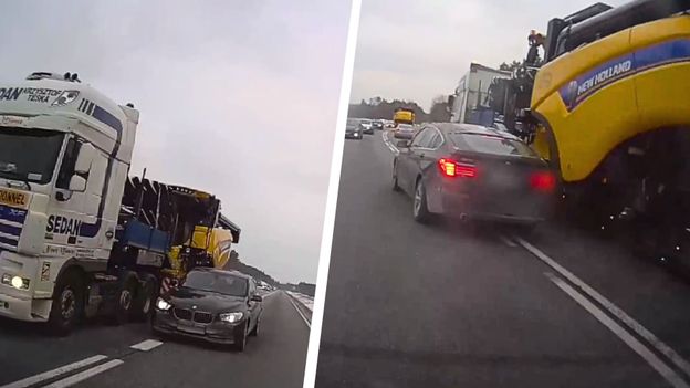 Brawurowy manewr wyprzedzania mógł zakończyć się tragedią. Na policyjną skrzynkę trafiło nagranie z kamerki samochodowej, które szybko zainteresowało funkcjonariuszy. Policja udostępniła cały materiał ku przestrodze. Na opublikowanym nagraniu widać, jak kierowca bmw na linii ciągłej wyprzedza ciężarówkę, pędząc "na czołówkę". Tylko szybka reakcja świadka całego zdarzenia sprawiła, że na drodze krajowej nr 10 w województwie kujawsko-pomorskim nie doszło do tragedii. Według służb, kierująca pojazdem błyskawicznie wykonała skręt w prawo, ratując tym samym siebie przed czołowym zderzeniem. Tylna kamerka uchwyciła jeszcze moment, na którym można zauważyć, że bmw wręcz przytuliło się do ciężarówki, by nie zderzyć się z innymi osobówkami z naprzeciwka. Gdyby jednak bmw zahaczyło o naczepę TIR-a, wszystko mogło zakończyć się o wiele groźniej. "W pierwszych dniach stycznia (7.01.24) na DK10, doszło do bardzo niebezpiecznej sytuacji. Kierujący pojazdem osobowym, nie stosując się do przepisów ruchu drogowego, rozpoczął manewr wyprzedzania jadących w jednym ciągu kilku pojazdów, w tym ciężarówki. Czujność, rozwaga i zachowanie zimnej krwi nadjeżdżającej z przeciwległego kierunku zapobiegło czołowemu zderzeniu, a tym samym uniknięciu tragicznego wypadku. Ku przestrodze zachęcamy do zapoznania się z materiałem filmowym i wyciągnięcia wniosków" - apeluje policja. Za tego typu wykroczenie kierowca bmw otrzyma mandat w wysokości minimum tysiąca złotych i 10 punktów karnych.