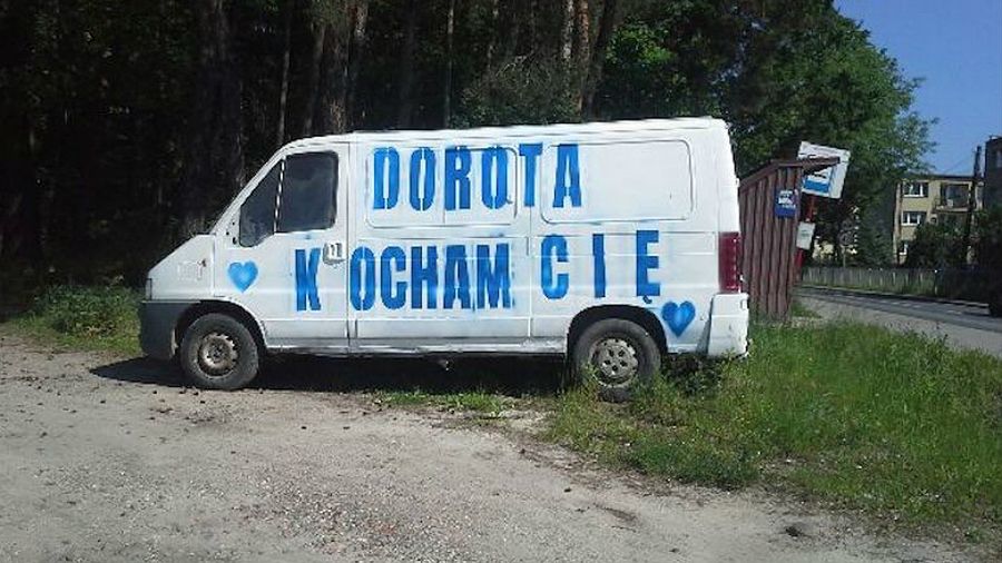 Ależ to musi być miłość! Tajemniczy wielbiciel Doroty wzdłuż uczęszczanej trasy w okolicach Piaseczna i Konstancina zaparkował kilka samochodów z wymalowanym miłosnym wyzwaniem: "Kocham cię, Dorota".