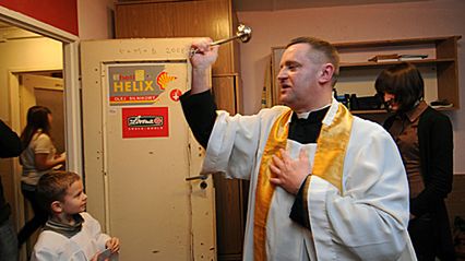 Studenci przyjmują księdza w akademiku - zdjęcia