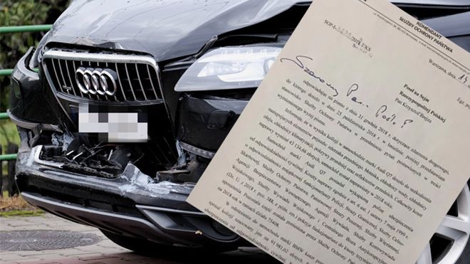 - W wyniku kolizji w samochodzie Audi Q7 doszło do uszkodzenia: zderzaka przedniego, błotnika, chłodnicy wody, chłodnicy oleju, chłodnicy klimatyzacji, pokrywy przedniej oraz reflektorów przednich. Całkowity koszt naprawy wyniósł 43 144,66 złotych. Samochód został naprawiony w 2018 roku – informuje szef SOP Tomasz Miłkowski.