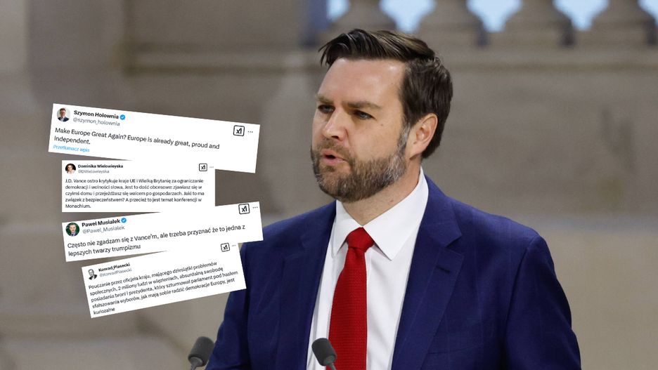"J.D. Vance uznał, że wystąpienie na Monachijskiej Konferencji Bezpieczeństwa to właściwa okazja, by poinstruować Europejczyków, jak mają żyć, na kogo głosować i kogo słuchać w mediach społecznościowych" - piszą politycy o piątkowym przemówieniu wiceprezydenta USA. Inni komentatorzy nazywają je "dość obcesowym" czy "kuriozalnym".