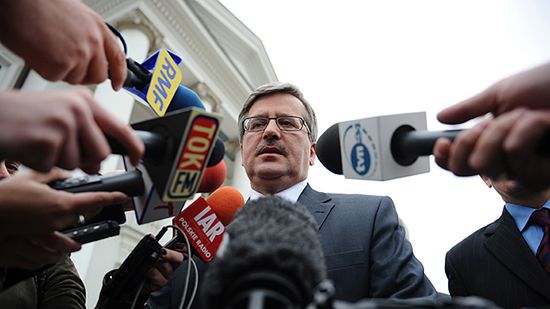 "Niech więc ten biało-czerwony kotylion będzie znakiem pozytywnej energii, naszych nadziei i ambicji, naszej radości z wielkiego wspólnego dobra - Rzeczypospolitej" - podkreślił Komorowski.