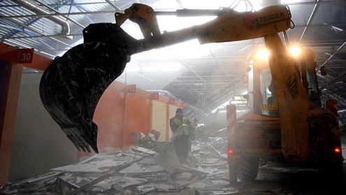 Warszawa, 29.01.2010.W warszawskiej hali, w której mieściły się Kupieckie Domy Towarowe rozpoczęły się prace przygotowawcze do rozbiórki hali.