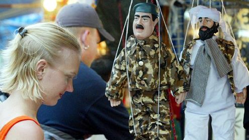 Marionetki Saddama Husajna i Osamy bin Ladena na straganie w Tajlandii.