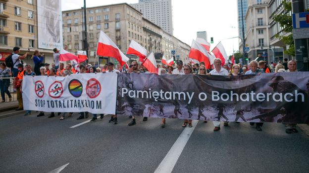 Na jednym z największych transparentów, widocznych na Marszu Powstania Warszawskiego, widniał napis "stop totalitaryzmom". Były tam przekreślone symbole systemów totalitarnych: swastyka oraz sierp i młot. Obok znalazły się przekreślona tęcza, która jest symbolem osób LGBT oraz twarz prezydenta Warszawy Rafała Trzaskowskiego. - To jest obrzydliwe. Po prostu to jest obrzydliwe. Polityka nie jest dla grzecznych dziewczynek i dla grzecznych chłopców, natomiast nie wszystko jest dozwolone. Obrażanie ludzi, szykanowanie i gnojenie nie jest dozwolone. Jeżeli ktoś po nich depcze, to zwykle są to najbardziej radykalne struktury. Nota bene, niech pan się nie spodziewa, że to się zakończy. Kaczyński zaproponował formułę rządzenia Polską poprzez konflikt. To jest taka sytuacja: napuszczamy jedną grupę społeczną na drugą - stwierdził gość programu "Tłit" w WP, wicemarszałek Sejmu Włodzimierz Czarzasty z Nowej Lewicy. - Jestem za tym, żeby w Polsce było miejsce dla wszystkich, ale jestem też za tym, żeby w Polsce nie było łamane prawo. Jeżeli się ludzi obraża, jeżeli się ludzi źle traktuje, to uważam, że można taki marsz przerwać - ocenił. - Ale jeszcze dwa zdania o dzieleniu społeczeństwa: PiS perfekcyjnie to wypracował. Proszę zobaczyć, dali dodatek węglowy - 3 tysiące złotych. Jak to jest skonstruowane? Jeżeli pan ogrzewa mieszkanie piecem na prąd czy olej, to pan nie dostanie tych 3 tysięcy złotych. Jeżeli zmienił pan piec, na piec ekologiczny, też nie dostanie pan tych pieniędzy. I teraz jest taki numer: w jednym bloku mieszka pani lub pan, który opala węglem, a po drugiej stronie klatki schodowej mieszka ktoś, kto ogrzewa prądem. Tu drogo i tu drogo, ale już się nie lubią, bo jeden 3 tysiące dostanie, a drugi nie. To jest typowa pisowska metoda - dodał Włodzimierz Czarzasty.
