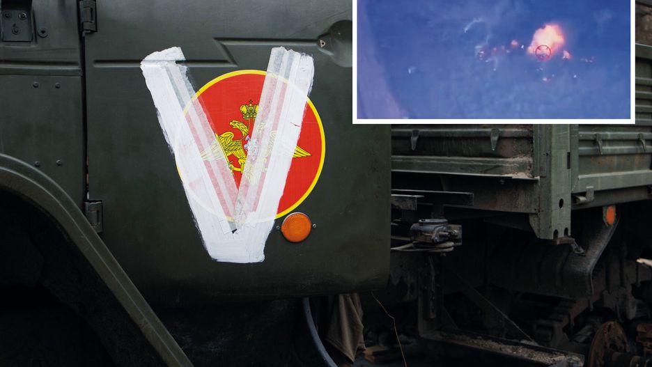 Na opublikowanym w mediach społecznościowym nagraniu z ukraińskiego drona widać pożar po wybuchach, które zniszczyły ciężarówki sił Rosji.