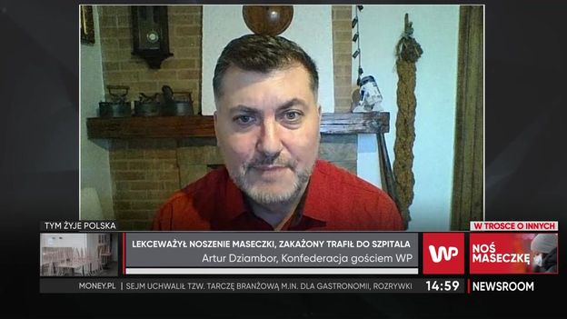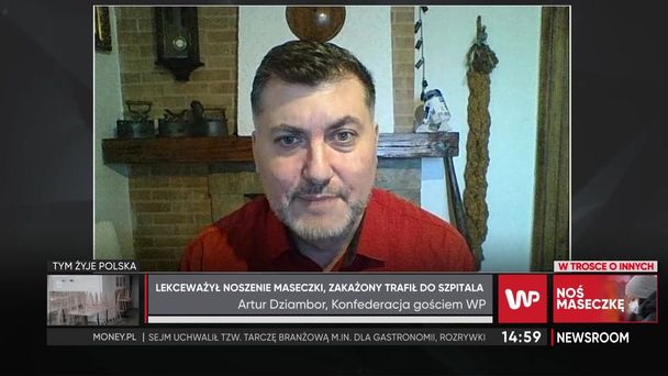 Koronawirus nie ustępuje. Zakażeniu uległo już wielu polityków, w tym m.in. poseł Konfederacji Artur Dziambor. Stan polityka w pewnym momencie na tyle się pogorszył, że konieczna była hospitalizacji. - Przeżyłem to naprawdę ciężko. Nikomu nie życzę - mówi w programie WP Newsroom Dziambor, który przed tym, jak potwierdzono u niego koronawirusa, niejednokrotnie występował w mediach jako przeciwnik noszenia maseczek. W rozmowie z nami podkreśla, że "nadal nie widzi sensu noszenia maseczek np. na ulicy". - Maseczkę się zakłada, gdzie się chodzi wśród ludzi - argumentuje, dodając, że "jest coś takiego, jak stężenie wirusa" i zaznacza, że "rzeczywiście noszenie maseczek może pomóc osobie, która jest bardziej narażona". Czy Konfederacja neguje istnienie COVID-19? - My negujemy to, w jaki sposób rząd obsługuje tego wirusa. Jesteśmy przeciwnikami gospodarczego lockdownu - stwierdził parlamentarzysta.