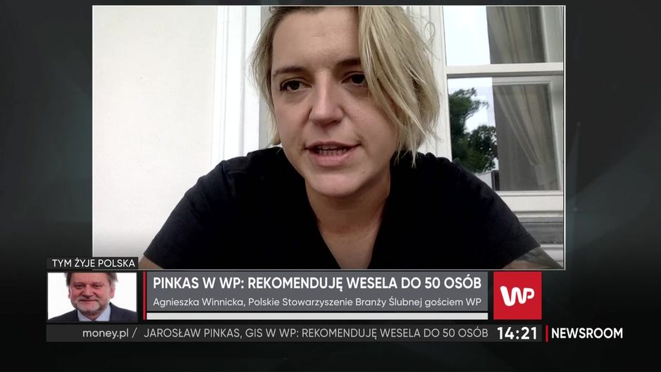 Koronawirus uderzył w wiele branż, w tym w firmy organizujące wesela. Główny Inspektor Sanitarny Jarosław Pinkas powiedział WP, że liczbę weselników należy ograniczyć do 50. Spotkało się to z krytyką ze strony przedsiębiorców. - Nie rozumiem argumentacji, że zmniejszenie limitu przełoży się na ograniczenie liczby osób starszych na weselach - stwierdziła w programie "Newsroom WP" Agnieszka Winnicka z Polskiego Stowarzyszenia Branży Ślubnej. Jej zdaniem na weselach ludzi starszych jest bardzo mało, a bezpieczeństwo zależy od przestrzegania zasad obowiązujących podczas uroczystości i zabawy. - Znam taką sytuację, że pan młody miał COVID-19 i nie zaraził się nikt z gości - przekonywała rozmówczyni Mateusza Ratajczaka. Mówiła też, że przy przestrzeganiu obostrzeń "uczestnictwo w weselu jest tak samo niebezpieczne jak udział w życiu społecznym". - Oczywiście są wyjątki mało chwalebne - przyznała Winnicka.