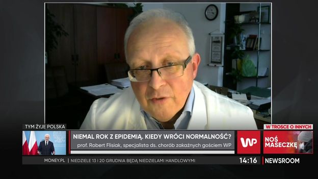 Koronawirus wciąż przynosi nowe zakażenia. Kontrowersje budzi kwestia braku testów dla osób, które kończą kwarantannę. W programie "Newsroom" WP do tej sprawy odniósł się prof. Robert Flisiak. - Zdecydowana większość zakażonych koronawirusem traci zakaźność po pięciu, góra siedmiu dniach od wystąpienia objawów - tłumaczył specjalista ds. chorób zakaźnych. Zaznaczył jednak, że część osób traci materiał genetyczny wirusa dopiero po 10 dniach od pojawienia się pierwszych symptomów. - W związku z tym to, co jest ustawowo zapisane - 13 dni, przy czym trzy bezobjawowe - daje bardzo wysoką gwarancję, że tej zakaźności nie będzie - podkreślił prof. Robert Flisiak. Medyk dodał, że od tej zasady funkcjonują jednak pewne wyjątki. Te dotyczą osób z niedoborem odporności. - Mogą być przez dłuższy czas nosicielami wirusa. Według opublikowanych badań takie osoby tracą zakaźność do 20 dni od wystąpienia objawów - tłumaczył ekspert.