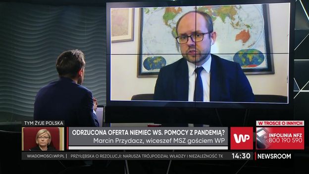 Polska nie skorzystała z niemieckiej oferty pomocy w walce z pandemią koronawirusa. Jakie jest aktualne zdanie MSZ w tej sprawie? - Potrzebujemy wsparcia personelu medycznego i lekarzy, którzy wyjechali z kraju w ostatnich latach i nie leczą polskich pacjentów. Nasze ewentualne oczekiwanie ze strony niemieckiej dotyczy wydelegowania cześć pracowników. Bylibyśmy wielce zobowiązani, ale na razie nie ma odpowiedzi - komentuje Marcin Przydacz. Jego słowa pokrywają się z wcześniejszą wypowiedzią Joanny Lichockiej. Wiceszef MSZ na taką uwagę powiedział, że nie chodzi jedynie o polskich lekarzy. - Obiektywnie w polskim systemie ochrony zdrowia liczba lekarzy jest niewystarczająca i są wakaty. Jeśli jest jakakolwiek oferta pomocy ze strony niemieckiej, to jest to przestrzeń, w której moglibyśmy otrzymać taką ofertę - doprecyzowuje polityk.