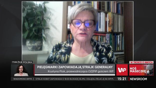 Pielęgniarki zapowiadają strajk generalny. Sprawę skomentował w programie "Tłit" wiceminister infrastruktury Marcin Horała (PiS), twierdząc, że "jakiekolwiek pomysły strajkowe w tym momencie to byłaby skrajna nieodpowiedzialność".- Za każdym razem, jak związki zawodowe mówią o strajku generalnym, to każdy z polityków, z której opcji by nie był, mówi o skrajnej nieodopowiedzialności - skomentowała w WP "Newsroom" Krystyna Ptak. Przewodnicząca OZZPIP dodała, że skrajną nieodpowiedzialnością jest informacja, którą "karmi się społeczeństwo". - O tym, że medycy dostają 200 proc. wzrostu i teraz dostaną 100 proc. wzrostu - podkreśliła dodając, że podobnie sytuacja wygląda w kwestii tzw. ustawy antycovidowej, która, mimo że została podpisana przez prezydenta RP, nie jest opublikowana w Dzienniku Ustaw. - Pielęgniarki uzyskują roczny dochód w wysokości 60 tys. złotych. Dla pielęgniarki jest bulwersujące sytuacja, w której ktoś dostaje z Ministerstwa Kultury 500 tys. złotych. Powiem to z pełną odpowiedzialnością, skoro minister kultury posiadał te środki, a widzimy ogromne niedofinansowanie i nieoszacowanie ochrony zdrowia, to może te środki w ramach dwóch ministerstw należało relokować - spuentowała Ptak, odnosząc się do Funduszu Wsparcia Kultury.