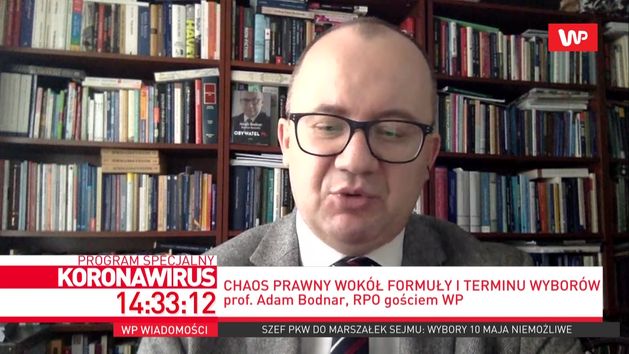 Rzecznik Praw Obywatelskich prof. Adam Bodnar mówił w programie specjalnym Wirtualnej Polski, że wniosek marszałek Sejmu Elżbiety Witek w sprawie terminu wyborów 2020 r. formalnie wpłynął już do Trybunału Konstytucyjnego. Jego zdaniem nie ma on nic wspólnego z konstytucjonalizmem i jasnymi zasadami, ale jest pewną próbą rozwiązania problemu terminu wyborów 2020 r. - Zostałem powiadomiony o tym 2 godziny temu i mam czas do godz. 10 rano, aby przedstawić swoje stanowisko w tej sprawie. Zwykle miałem na to 30 dni - powiedział Adam Bodnar. Powiedział on też, że nie będzie zdziwiony, jeśli wyrok Trybunału zapadanie w czwartek w ciągu dnia na posiedzeniu niejawnym, jeszcze przed głosowaniem w Sejmie.
