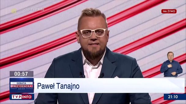 Kandydat na prezydenta Paweł Tanajno powiedział, że to rząd jest odpowiedzialny za to, że firmy zwalniają w tej chwili swoich pracowników i obniżają pensje. Zapewnił on, że nie należy do klasy politycznej, ale jest "jednym z nas". W jego wystąpieniu nie obyło się też bez przytyków do Szymona Hołowni i prezydenta Andrzeja Dudy. Paweł Tanajno powiedział, że jeśli zostanie wybrany, to nie będzie prezydentem, który "płacze nad Konstytucją" oraz będzie potrafił "przeciwstawić się dyktatorowi z Nowogrodzkiej". W środę w TVP odbyła się debata telewizyjna kandydatów w wyborach prezydenckich 2020 r. Uczestniczyli w niej: Krzysztof Bosak, obecny prezydent Andrzej Duda, Szymon Hołownia, Marek Jakubiak, Małgorzata Kidawa-Błońska, , Władysław Kosiniak-Kamysz, Paweł Tanajno oraz Stanisław Żółtek.