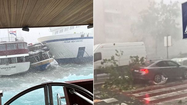 Silny wiatr, ulewny deszcz i grad nawiedziły na początku tygodnia chorwacki Split. Turyści przebywający akurat w tym regionie na urlopie mieli potężnego pecha. Agencja AP udostępniła nagrania na których widać wielką siłę żywiołu w mieście. Widoczność w centrum Splitu była ograniczona przez ulewę, której towarzyszył grad. Co więcej, na nagraniach świadków, które pojawiły się na platformie X widać, jak w lokalnym porcie wyglądała sytuacja podczas burzy. Momentami nic nie było widać, a gdy wszystko ustało, można było zauważyć ogromne zniszczenia. Prom Petar Hektorović wskutek potężnych podmuchów wiatru uderzył w inne jednostki, co dobrze widać na jednej z fotografii załączonej w nagraniu. Split był sparaliżowany. Miejska komunikacja wróciła do normalnych kursów dopiero w środę, gdy udało się posprzątać służbom powalone drzewa i połamane gałęzie, czy nawet urwane dachy i zbite szyby. To nie był odosobniony incydent - w całym regionie Bałkanów po upałach przeszła seria gwałtownych burz. Załamanie pogody w Europie jest efektem niżu "Gabriel", który nadciąga teraz nad Polskę i zostanie nad Wisłą co najmniej do końca tygodnia.