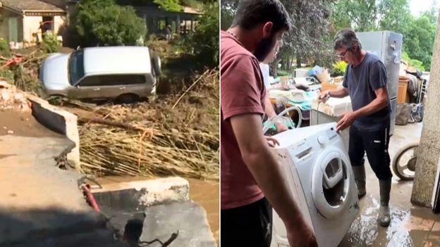 Załamanie pogody na południu Francji. Agencja PAP udostępniła nagrania z z miejscowości Le Lavandou, gdzie zginęły trzy osoby. Na obrazkach widać potężne zniszczenia po przejściu fali powodziowej. Zniszczone drogi, mosty i domy, tony błota, a także samochody w nietypowych miejscach, które znalazły się nam na skutek porwania przez wodę. Obrazki przypominają te, które mogliśmy widzieć jesienią w Kłodzku, gdy doszła tam fala powodziowa. Lokalni mieszkańcy są w szoku. Próbowano uratować starsze małżeństwo, jednak silny strumień wody odciął drogę do ich domu. - Była tam starsza para, której nie dało się uratować. Mój mąż chciał im pomóc, ale nie mogliśmy ich ocalić - zdradziła mieszkanka Le Lavandou. Powódź powstała 20 maja, gdy południowy region kraju został dotknięty przez intensywne burze i ulewne deszcze. W niektórych miejscach, takich jak Le Lavandou, odnotowano opady rzędu 255 mm w ciągu godziny. Więcej w materiale wideo.