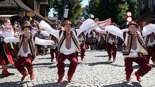 Tysiące turystów podziwiało korowód zespołów folklorystycznych, który przeszedł ulicami Zakopanego, rozpoczynając 43. Międzynarodowy Festiwal Folkloru Ziem Górskich.