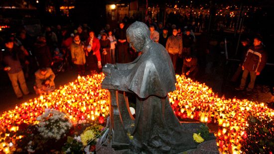 O godzinie 21.37 cała Polska pogrążyła się w zadumie w piątą rocznicę śmierci Jana Pawła II. Na ulicach płoną znicze. Wierni oddając hołd Ojcu Świętemu modlili się o szybką beatyfikację.