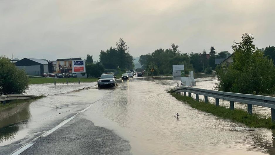 Paraliż podczas powrotu z weekendu w Tatrach. Z powodu ulewnych opadów pod wodą znalazła się zakopianka. Z koryta wystąpiła lokalna rzeka i zalała drogę w Głogoczowie. Ruch w kierunku Zakopanego odbywał się tylko jednym pasem. Na miejscu był Rafał Raczyński, który podzielił się z naszą redakcją nagraniami zalanej jezdni. Z informacji przekazanych przez media wiadomo, że na drodze w Głogoczowie w pewnym momencie znajdowało się pół metra wody. Nie widać było nawet barierek okalających trasę. Policjanci apelują do kierowców, którzy właśnie wracają z weekendu o omijanie zakopianki i kierowanie się na drogi objazdowe.