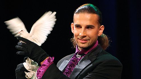 Na pokazach iluzjonistów nie mogło oczywiście zabraknąć sztuczek z gołębiami.