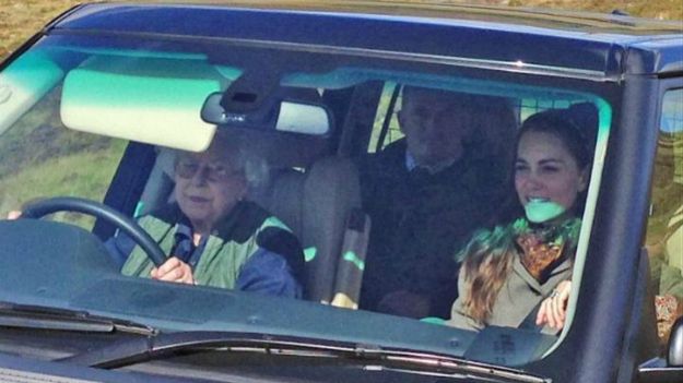 Królowa przy okazji złamała nieco protokół, bo nie powinna sama siadać za kółkiem potężnego terenowego Range Rovera. Razem z księżną Kate wybrały się też na obiad z księciem Williamem.