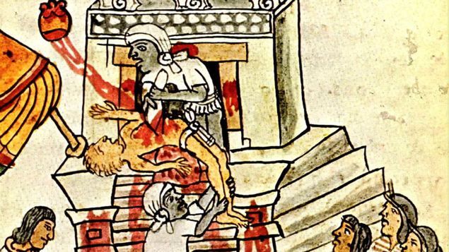 Z tych wszystkich ludów w metodycznym podejściu i liczbach prym wiodą oczywiście Aztekowie. Sami niezbyt liczni, zmusili w XV w. okoliczne ludy i miasta do płacenia trybutu, tworząc imperium sięgające Zatoki Meksykańskiej. Tylko w czasie jednego święta konsekracji Wielkiej Świątyni w Tenochtitlan kapłani mieli wyrwać serca 80 tys. nieszczęśników. Liczba ta, jako że powstała po hiszpańskim podboju, jest przez badaczy podważana. Skłaniają się oni ku około 4 tys. ofiar. Rocznie zaś miało w Tenochtitlan być składanych 20 tys. ludzi, co istotnie czyni ową religię najbardziej krwiożerczą.