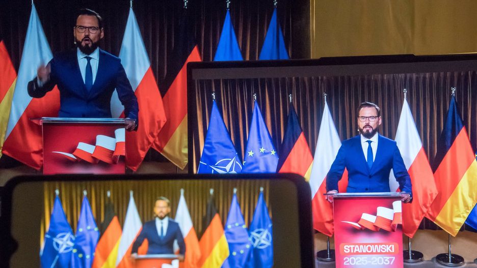 - Chcę być kandydatem, aby stanąć do debaty w Telewizji Polskiej w likwidacji - zaznaczył Stanowski. Jednocześnie podczas przemowy stał na tle licznych flag: unijnej, NATO, Polski oraz Niemiec. "Czy mam wreszcie powiedzieć o osobie, na którą chcecie i powinniście zagłosować? Ta osoba tutaj nie stoi. Takiej osoby nie ma" - mówił.