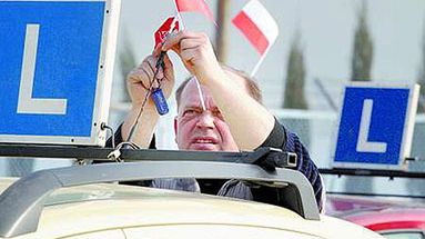 Liczące po kilkanaście samochodów ozdobionych biało-czerwonymi chorągiewkami kawalkady jeździły w kółko między ul. Ziębicką, gdzie jest siedziba WORD, a Armii Krajowej. Gdy sznur pojazdów z tabliczką opatrzona literą "L" na dachu skręcał z powrotem w stronę ośrodka policjanci wstrzymywali ruch na obwodnicy. Po godzinie samochody szkolne karnie zjechały na parking.