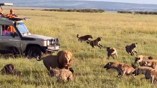 Samotny lew nie dał za wygraną całemu stadzie hien. Gdy uczestnicy wycieczki safari w Kenii przejeżdżali przez park Masai Mara, nagle zobaczyli wiele hien i lwa, który się od nich odgania. Podjeżdżając bliżej okazało się, że drapieżnik raczył się właśnie posiłkiem, co próbowały wykorzystać głodne hieny. W pewnym momencie uczestnik wyprawy Robert Sobrepena wyciągnął telefon i nagrał niesamowitą walkę. Jego kultowe i archiwalne nagranie udostępniła agencja Reutera. Widać na nim, że lew w trakcie posiłku jest podgryzany przez hieny, które zapewne chciały wykorzystać skupienie swojego przeciwnika. Potężny drapieżnik kilkukrotnie powalił kilka nękających go hien, aż wreszcie ugryzł jedną z nich i powalił na ziemię, co było znakiem dla reszty stada, że "król zwierząt" nie odpuści. Całe stado wtedy zrezygnowało, pozostawiając zwycięzcę starcia w spokoju