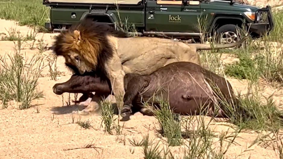 Turyści odwiedzający Park Narodowy Krugera w Południowej Afryce znów byli świadkiem zapierających dech w piersiach wydarzeń. Tym razem grupa odwiedzających mogła na własne oczy zobaczyć polowanie lwa. Nagranie z momentu ataku nagrał jeden z przewodników parku. Nagranie opublikowano na kanale YouTube. Widać na nim, że król dżungli z początku skrada się w zaroślach, zbliżając się z każdym krokiem do stada bawołów. W pewnym momencie dochodzi do ataku i byk pada na ziemię. Reszta stada próbowała jeszcze ratować ofiarę lwa, jednak na nic to się zdało. Gdy zrobiło się pusto, drapieżnik wrócił po swoją zdobycz i przeciągnął ją przez całe koryto rzeki, by następnie w spokoju zająć się swoją ofiarą.