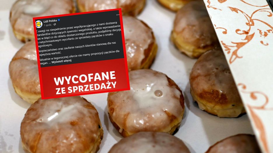 "Z uwagi na niespełnienie przez współpracującego z nami dostawcę standardów dotyczących żywności wegańskiej, a także wprowadzenie nas w błąd co do składu dostarczonego produktu, podjęliśmy decyzję o natychmiastowym wycofaniu ze sprzedaży pączków o smaku jagodowym" - czytamy w komunikacie opublikowanym na Facebooku Lidl Polska.