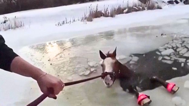 Lód załamał się pod koniem. Zwierzę zaczęło się topić