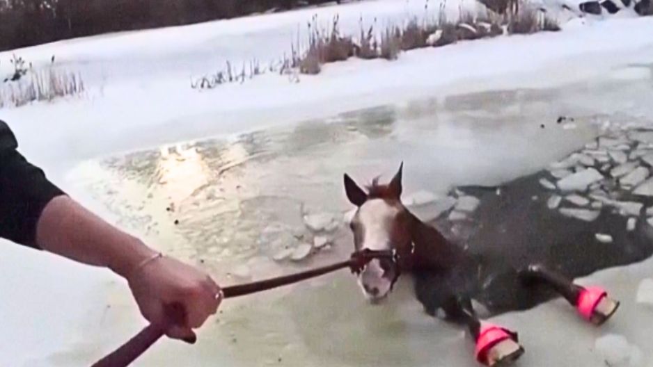 Dramatyczna akcja ratunkowa w USA pod Nowym Jorkiem. Agencja AP udostępniła nagranie z kamerki zamontowanej na mundurze policjanta, który brał udział w akcji ratowania konia na zamarzniętym stawie. Trzy konie biegały po posiadłości właścicielki Ali Ernst. W pewnym momencie kobieta zauważyła, że pod jednym z nich załamał się lód. Ruszyła mu na pomoc, jednak sama nie dała rady go wyciągnąć i trzymała mu jedynie głowę ponad poziomem wody. Udało się jej zadzwonić po służby i wspólnymi siłami po kilkunastu minutach koń wrócił na powierzchnię. "Ernst wykonała serię telefonów o pomoc, biegnąc do dziury w lodzie, chwyciła kantar konia, aby utrzymać jego głowę i czekała na pomoc. Funkcjonariusz Kyle Clinton przybył pierwszy i pomógł podnieść całą głowę z powrotem na lód. Wkrótce dołączyli do nich inni funkcjonariusze, sąsiedzi i członkowie rodziny oraz dwóch pracowników jej dziadka" - wyjaśniła agencja AP. Koń doznał hipotermii i wylądował w szpitalu dla zwierząt. Po dwóch dniach został wypuszczony i teraz jego życiu nic już nie zagraża. Właścicielka przyznała, że dopóki zima się nie skończy, konie będą trzymać się z dala od zamarzniętego stawu.