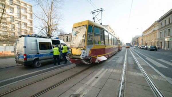Tramwaj zderzył się z samochodem w Łodzi. Świadek: pasażerowie poinformowali, że doszło do zderzenia